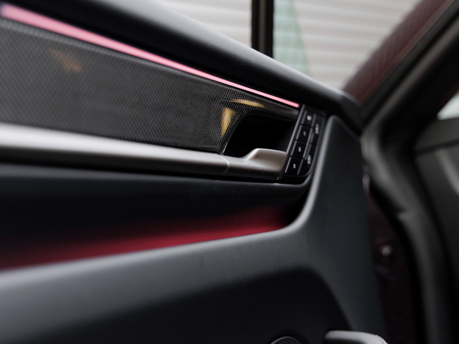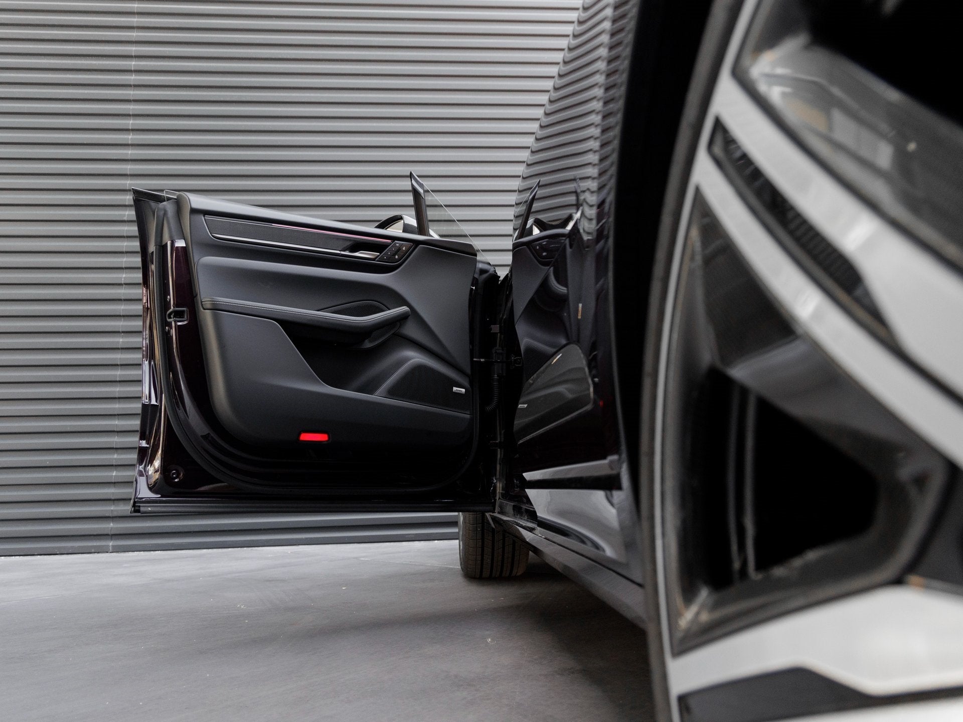 The Macan Electric Turbo stands as a beacon of design and performance, its Copper Ruby Metallic exterior not just a color, but a badge of honor that reflects Porsche's illustrious electric innovation. Adorned with 22 Exclusive Design Wheels with Aeroblades in Carbon Fiber and Exterior Mirrors Upper Trim in Carbon Fiber, it presents an intimidating and elegant stance. The Power Charge Port Cover, Roof Rails in Black Aluminum, and Model Designation on Rear with Electric Logo on Side in Silver enhance its cutting-edge allure.