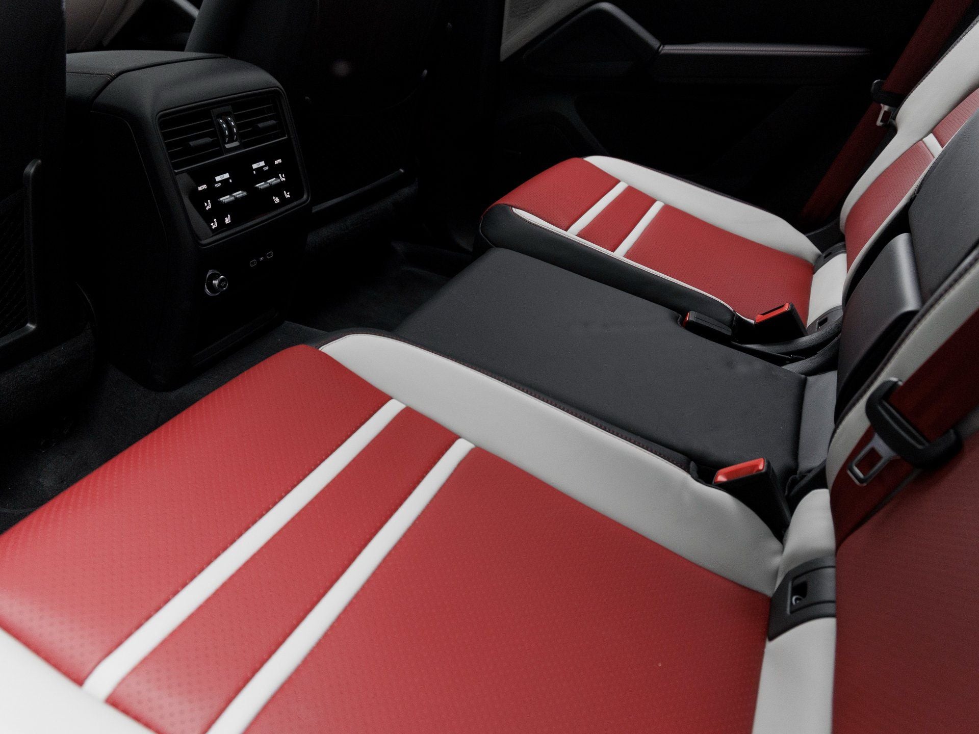 Step inside and the Black/Chalk interior is elevated by the Deviated Stitching Interior Package with Deviated Leather Seat Centers in Bordeaux Red, creating a dramatic and bespoke environment. Seat Belts in Bordeaux Red provide a striking contrast, while Porsche Crests on the Front Headrests reinforce the marques heritage. The 14-way Power Seats with Comfort Memory, Ventilated Front Seats, and Heated Rear Seats ensure exceptional comfort for every passenger. Rear Comfort Seats (2+1) enhance versatility, and 4-Zone Climate Control maintains individualized comfort throughout the cabin. The Heated GT Sport Steering Wheel in Leather offers a tactile connection to the drive, while the BOSE Surround Sound System immerses occupants in rich, high-fidelity audio. The Roof Lining in Kalahari Fabric further elevates the interior ambiance with a refined touch.