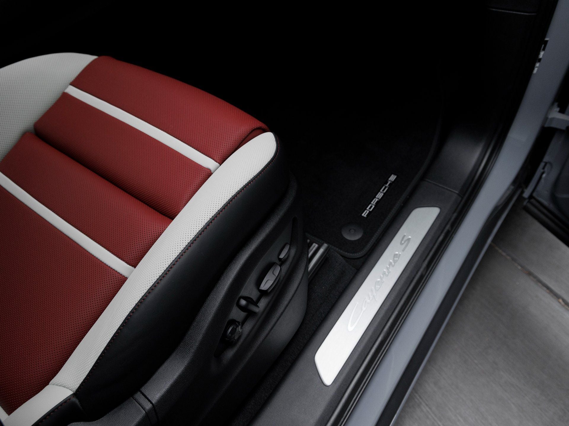The Cayenne Coupe S stands as a bold expression of athletic refinement, its Arctic Grey exterior accentuating the sculpted coupe silhouette and aggressive stance. Equipped with the SportDesign Package in High Gloss Black and a Roof Spoiler in High Gloss Black, this SUV exudes dynamic intent from every angle. Riding on striking 21 RS Spyder Design Wheels in Chromite Black Metallic, it commands the road with confidence. HD-Matrix Design LED Headlights and Exclusive Design Taillights create a distinctive visual signature, while the PORSCHE Logo on Rear in High Gloss Black with deletion of the model designation underscores its sleek, modern aesthetic. Exterior Mirrors in Exterior Color and Under Door Puddle Light Projectors add the finishing touches to its unmistakable presence.