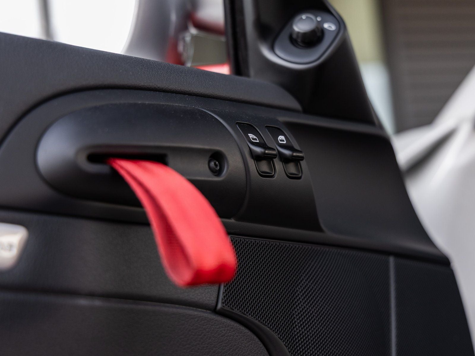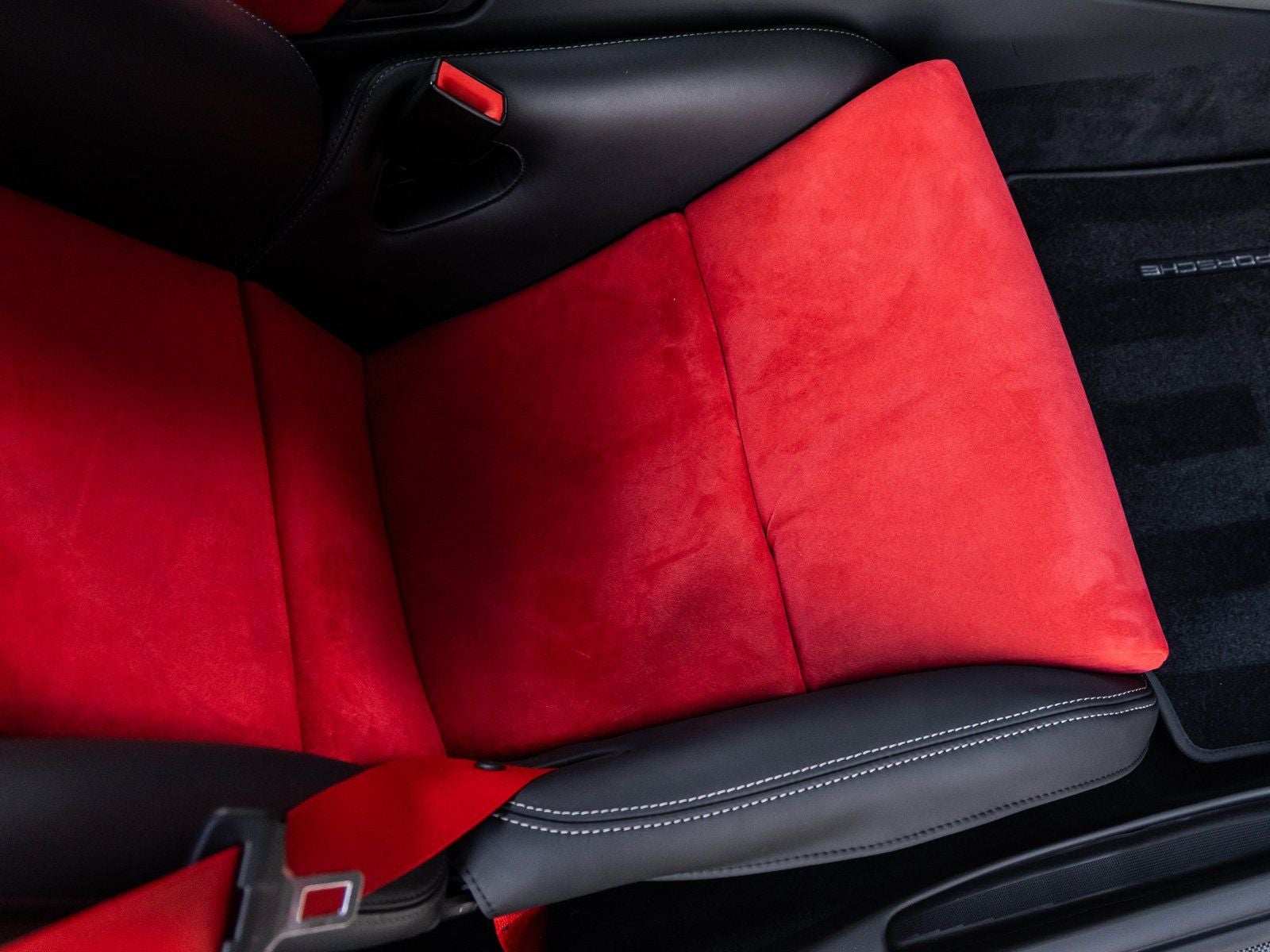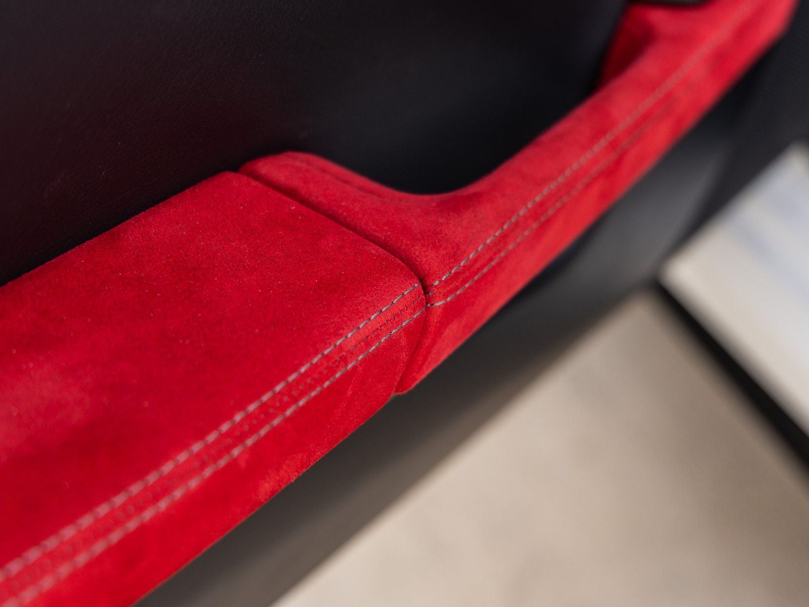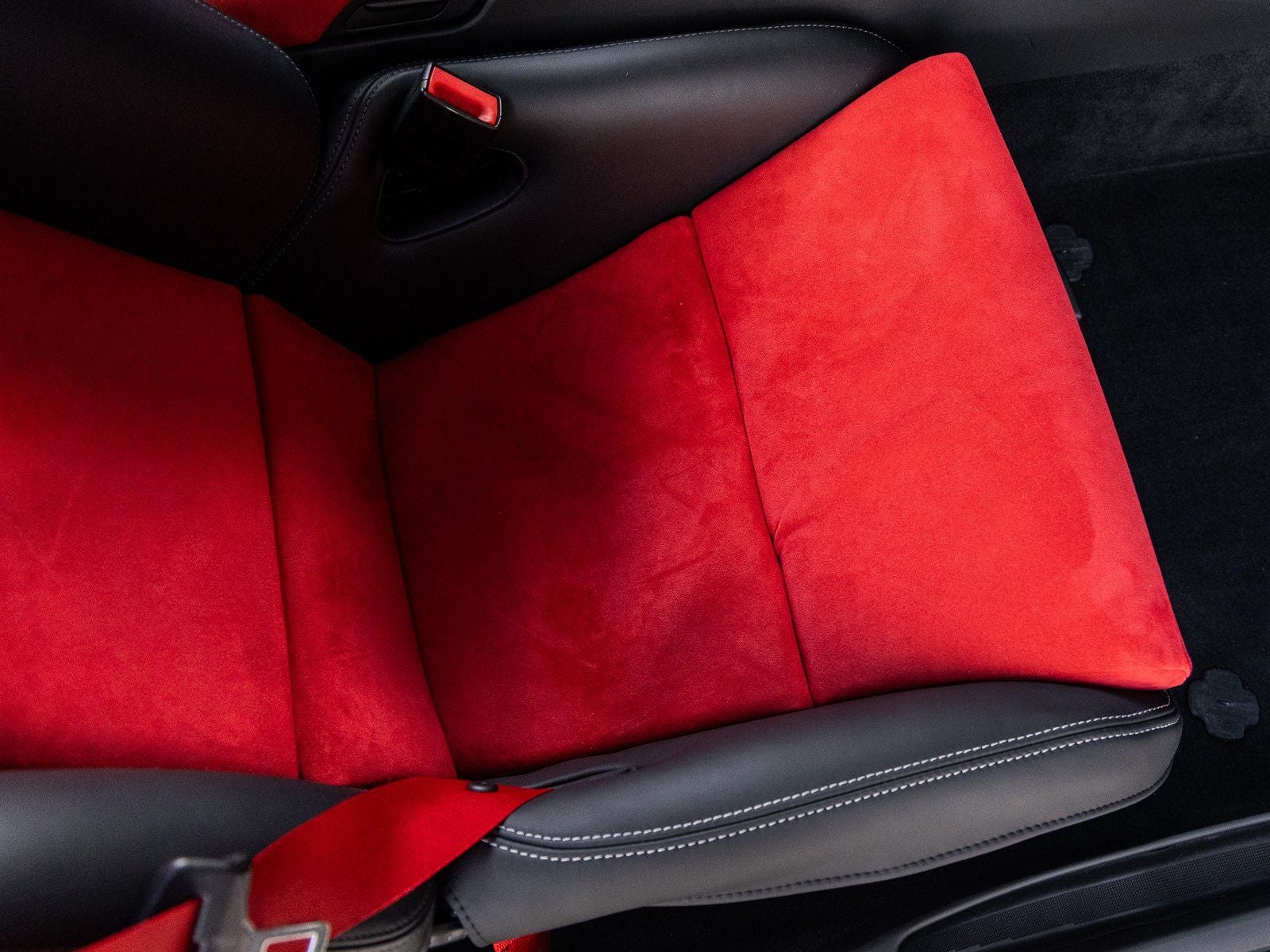 - Red Alcantara trim -inc: seat centers, door handles, door panel armrests, center console storage bin lid, gear lever/handbrake lever