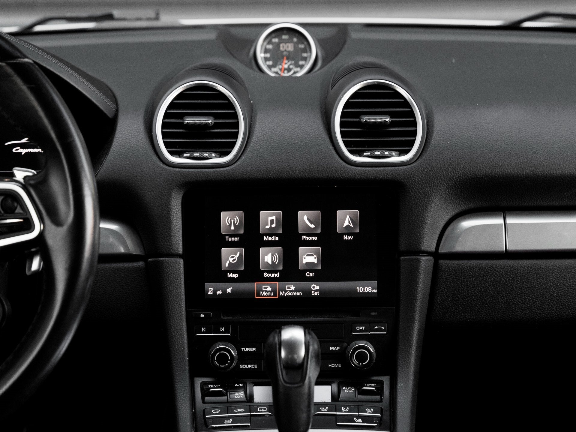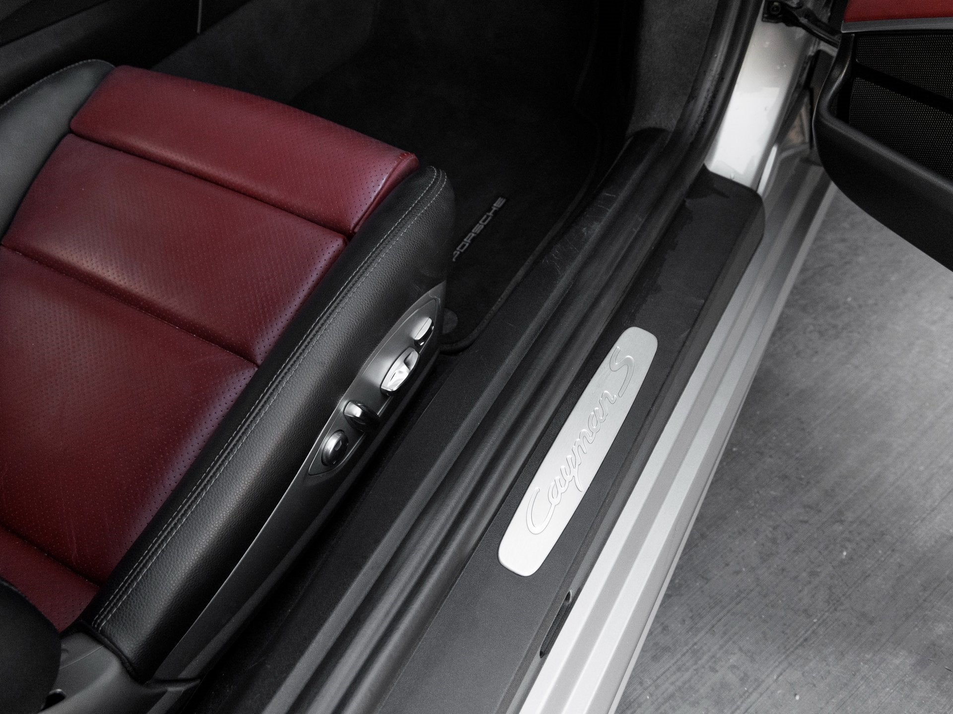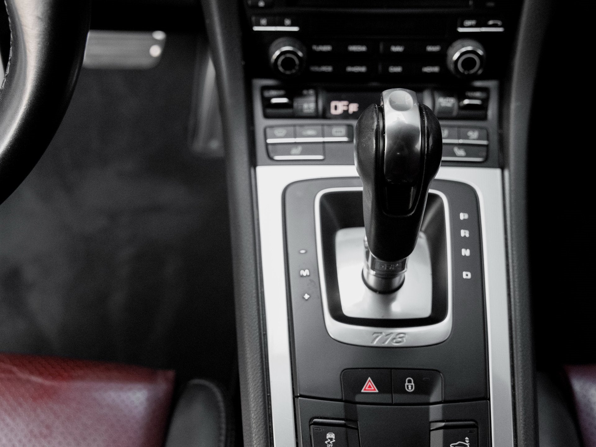 Step inside and you're welcomed by a striking Black/Bordeaux Red interior, merging boldness with luxury. Outfitted with the Premium Package i.c.w. Power Sport Seats (14-way), this Cayman S offers top-tier comfort via Seat Heating, 2-Zone Automatic Climate Control, and Automatically Dimming Mirrors with Rain Sensor. The cabin also features a Heated Multifunction Steering Wheel, Navigation Module for Porsche Communication Management (PCM), Seat Belts in Guards Red, and the tasteful inclusion of the Smoking Package for added convenience.