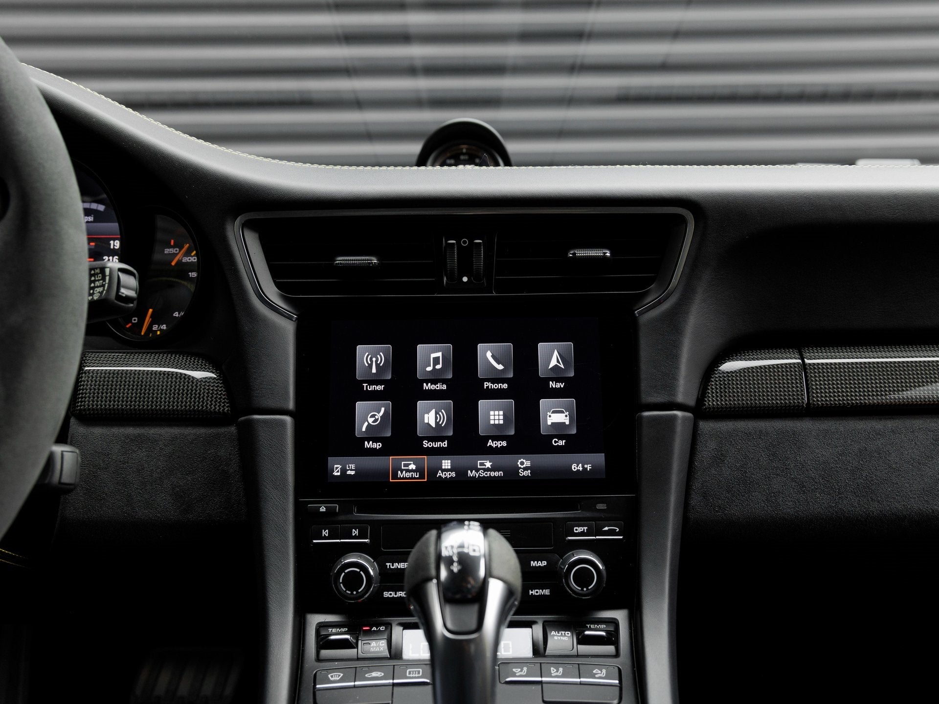 Step inside and the Leather/Alcantara Interior in Black with Platinum Grey stitching surrounds you in a cockpit engineered for the most demanding drivers. Extended deviated stitching, Alcantara sun visors, and the Storage Compartment Lid in Alcantara with Porsche Crest elevate the cabins bespoke feel. Illuminated Carbon Fiber Door Sill Guards, Aluminum Pedals and Footrest, and Seat Belts in Racing Yellow reinforce the GT2 RSs motorsport DNA, while the BOSE Surround Sound System ensures comfort is never compromised.