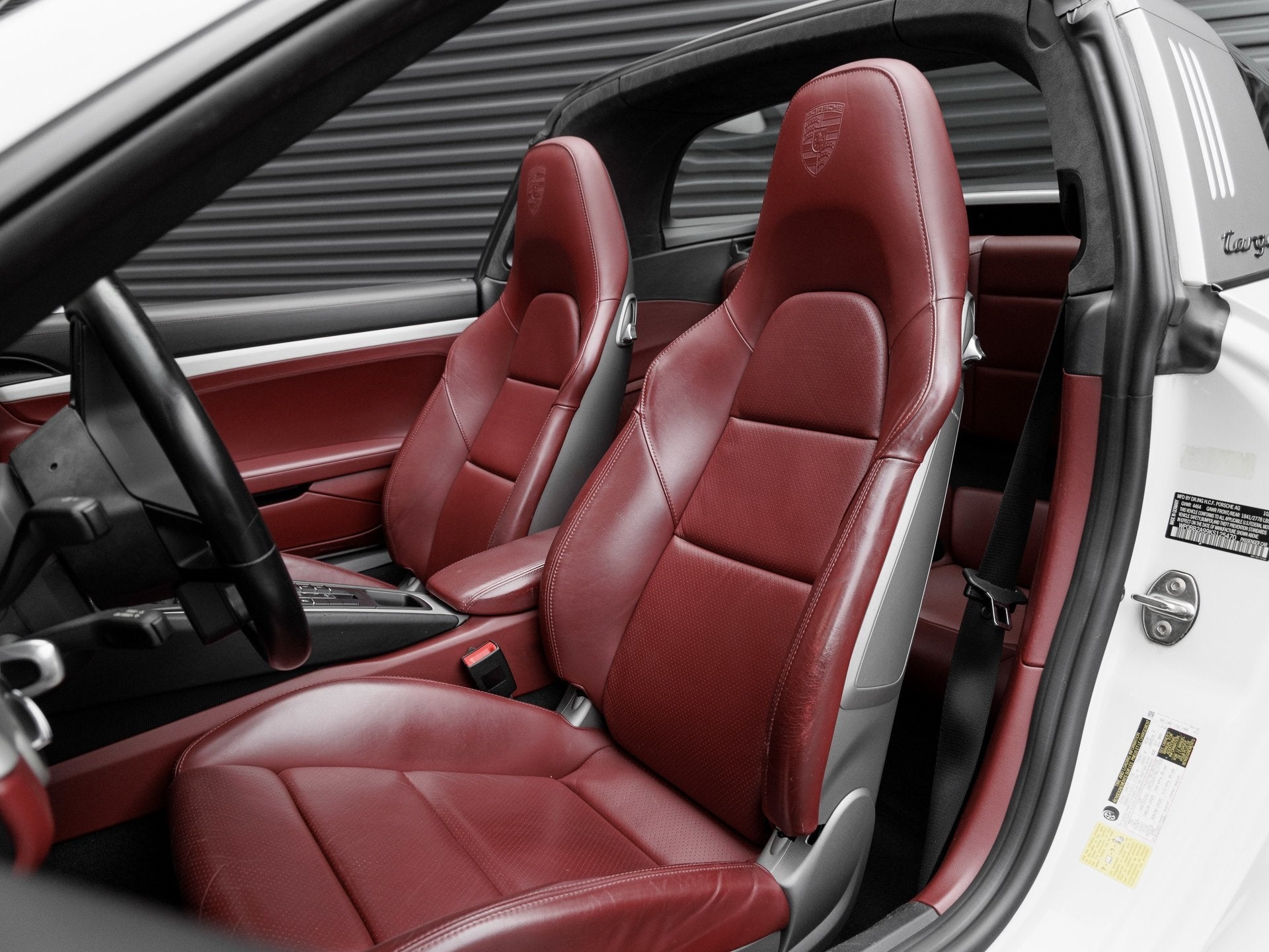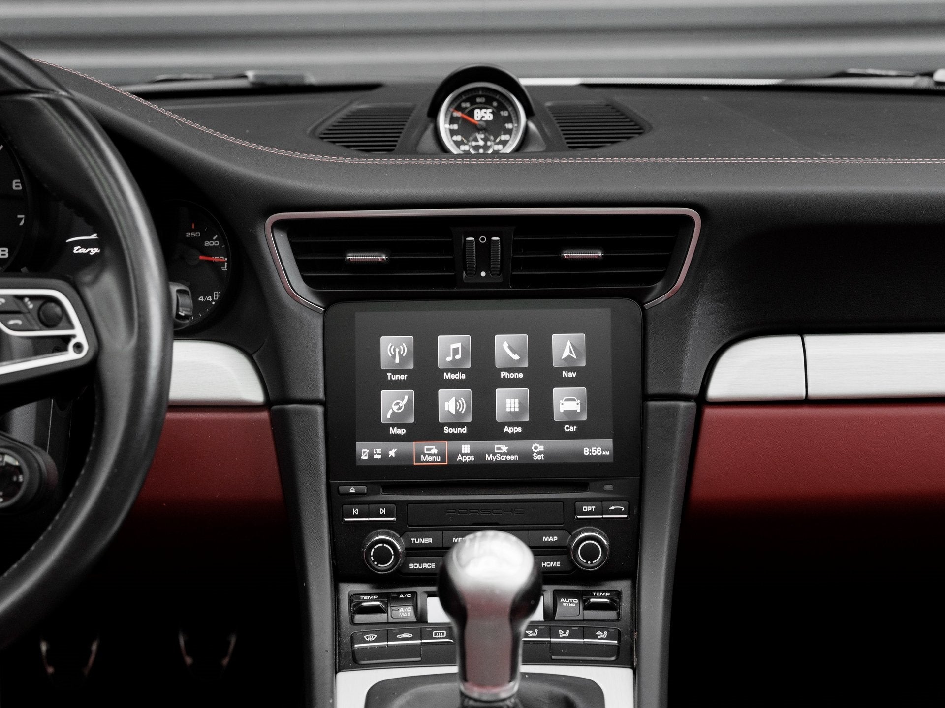 Step inside the striking Black/Bordeaux Red interior, where luxurious materials meet motorsport-inspired elements. Outfitted with Adaptive Sport Seats Plus (18-way) with Memory Package, Heated Multifunction Steering Wheel, Interior Trim in Brushed Aluminum, and Manual Gear Lever with Brushed Aluminum Trim, the cabin delivers tailored sophistication. The Porsche Crest on Headrests and Door Sill Guards in Stainless Steel, Illuminated add the perfect finishing touches. A BOSE Surround Sound-System ensures that every drive is accompanied by an exceptional audio experience.