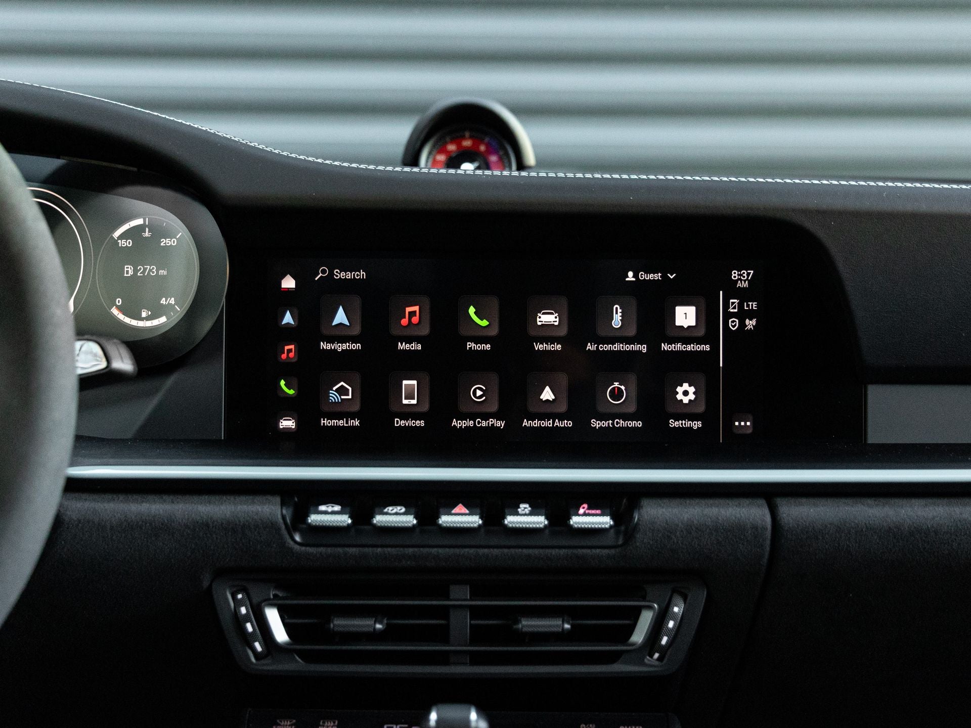 • Central Tachometer in Guards Red: A signature Porsche touch that places performance front and center with unmistakable visual flair.