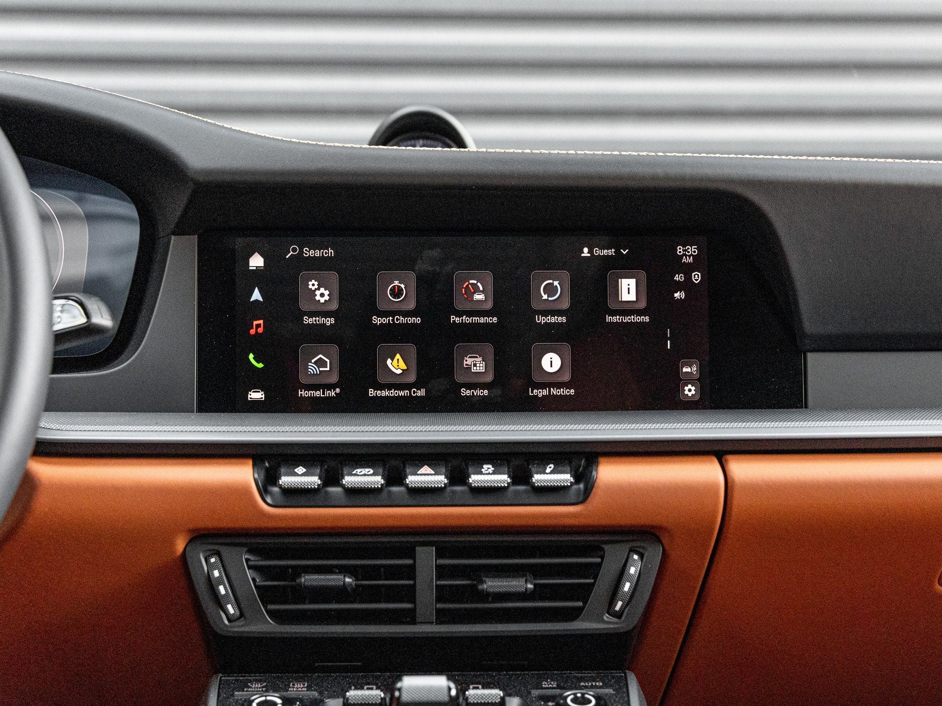 Step inside and the Basalt Black/Classic Cognac interior envelops you in craftsmanship of the highest order. Adaptive Sport Seats Plus (18-way) with Memory Package provide exceptional comfort and support, while Ventilated Seats (Front) and the Heated GT Sport Steering Wheel in Leather ensure year-round driving pleasure. The 930 Leather Package, Extended Door Panel in Leather, Steering Column Casing in Leather, Inner Door-Sill Guards in Leather Classic Cognac, and Passenger Cupholder Trim in Leather showcase meticulous attention to detail. Porsche Crests on the Front Headrests reinforce the marques heritage, while Rear Seats add practicality. The BOSE Surround Sound System delivers immersive audio clarity, and Surround View with Active Parking Support enhances everyday usability.